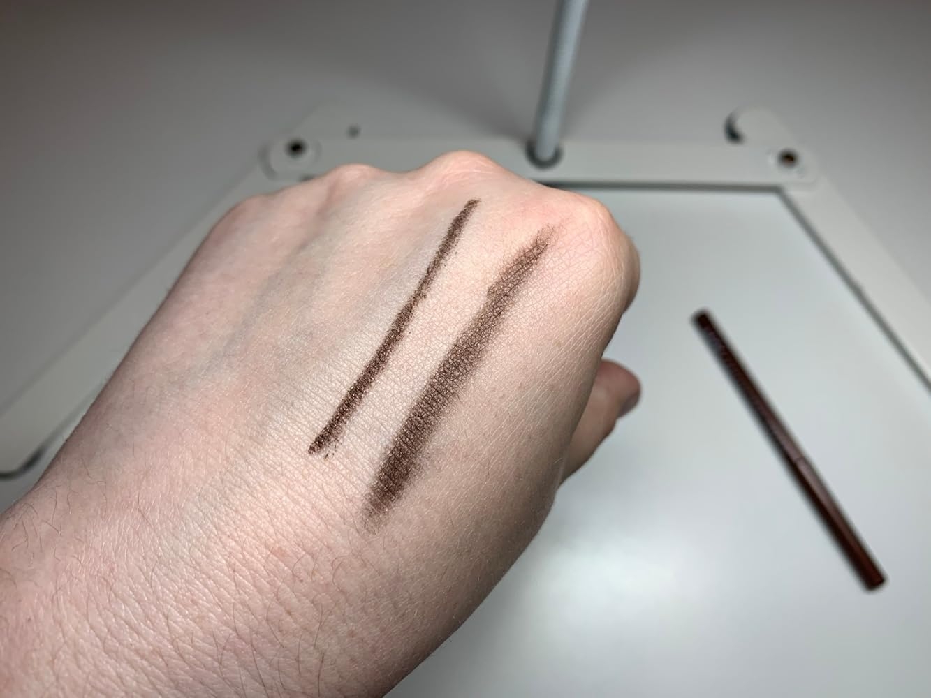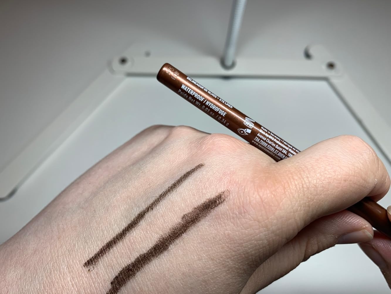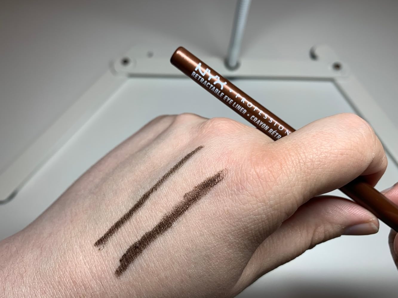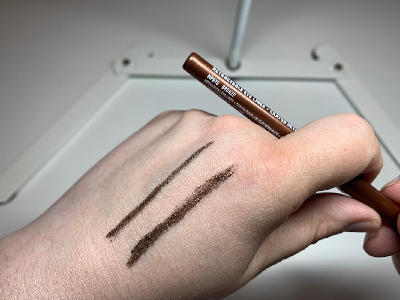 This NYX Professional Mechanical Eye Pencil applies very smoothly and glides on easily on the eyelids and on the waterline. I love the fine point of this eyeliner as it provides such great precision and also gives you the option of drawing thicker or thinner lines. The fact that it is a retractable pencil is also a definite plus. The color is a rich coffee brown with copper and gold flecks which are a bit difficult to capture on camera. This liner shade isn’t as harsh as a black liner, so it makes it perfectly suitable to wear during the daytime. If you let it set properly, it will not smudge and will definitely last for a majority part of the day. If you want to intentionally smudge this liner, you just need to do it before it sets. You can also set it with eyeshadow of a similar color if you really want it to last even longer. When all is said is done, I really like this product. It would be great to have even more color options. Great purchase. Would recommend.If my review was helpful let me know by clicking on the ”Helpful” button 🙂 👍🏻